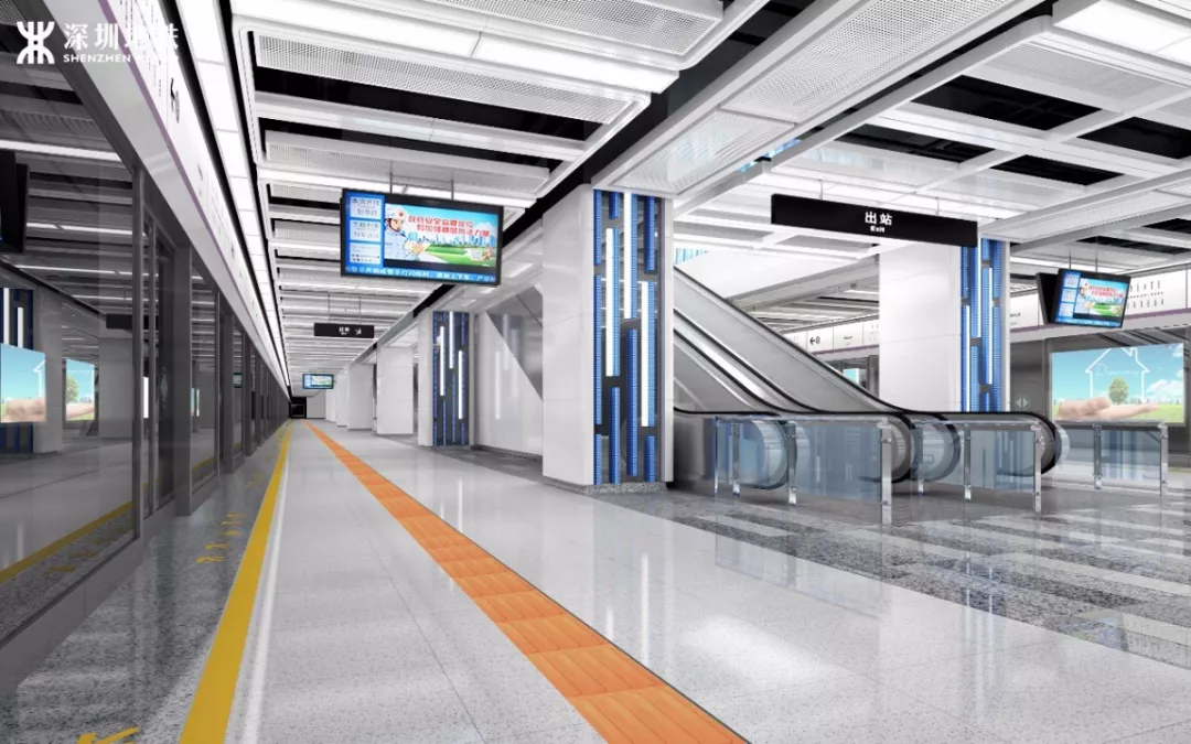 综合考虑前海地下漫行系统,在楼梯口部重点利用智慧科技及灯光设计,表现前海特色,使之成为视觉焦点,突出垂直交通枢纽,达到高效交通目的。