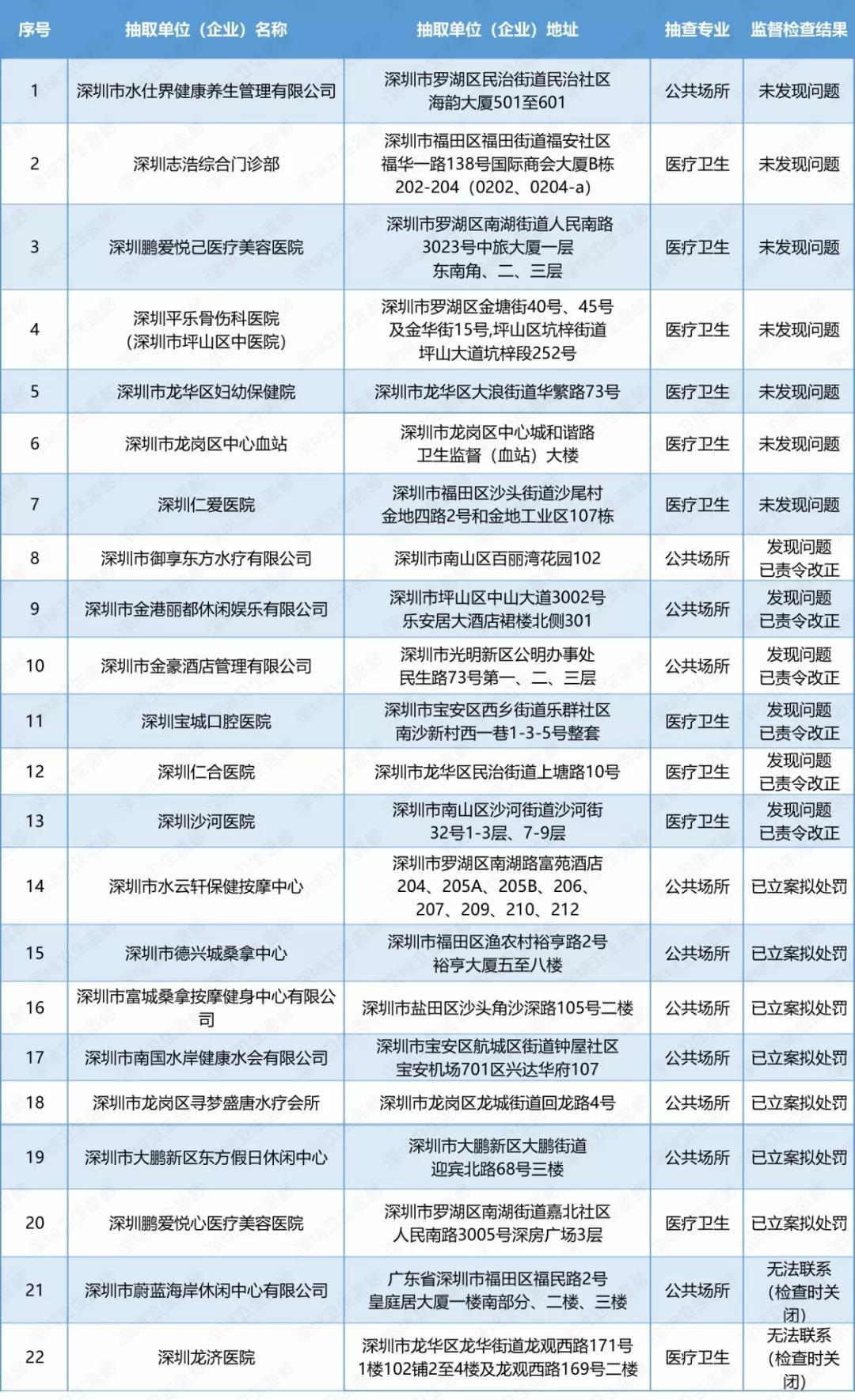 曝光!深圳9月双随机抽查,这7家公共场所和医疗机构被处罚