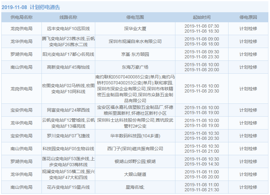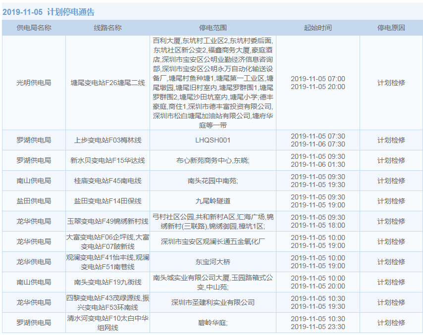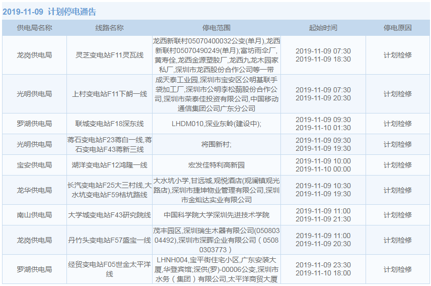 见圳客户端·深圳新闻网2019年10月29日讯 据中国南方电网最新消息:11月1日至11月15日,深圳这些地方将停电!快来看看有没有你家的吧。