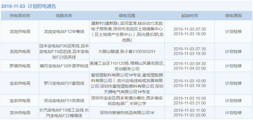 11月1日-15日,深圳这些地方将停电(附全名单)