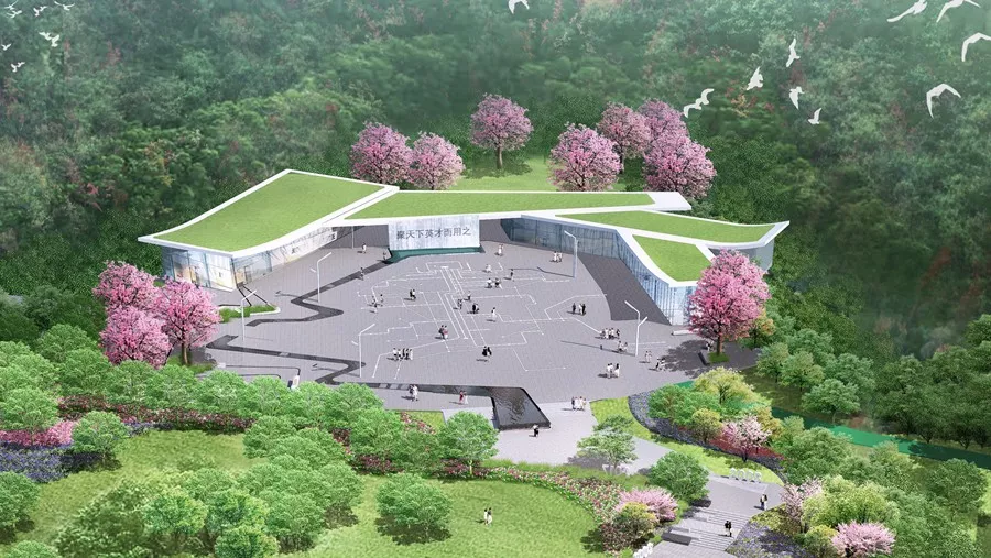 驿站占地面积约2400平方米,建筑设计现代生态,俯瞰驿站由三个“人”组成,寓意“三人为众”的理念,采用玻璃幕墙体现深圳透明的人才政策。驿站分为室内和室外部分,其中室内设有多功能厅、展厅、报告厅、会议室、书吧和人才服务站(目前多功能厅和服务站暂不开放),为人才提供会议、活动、展示、阅读、休闲及咨询等功能,室外也设有展览、休闲等功能,以期打造成服务人才、宣传人才的永久阵地。