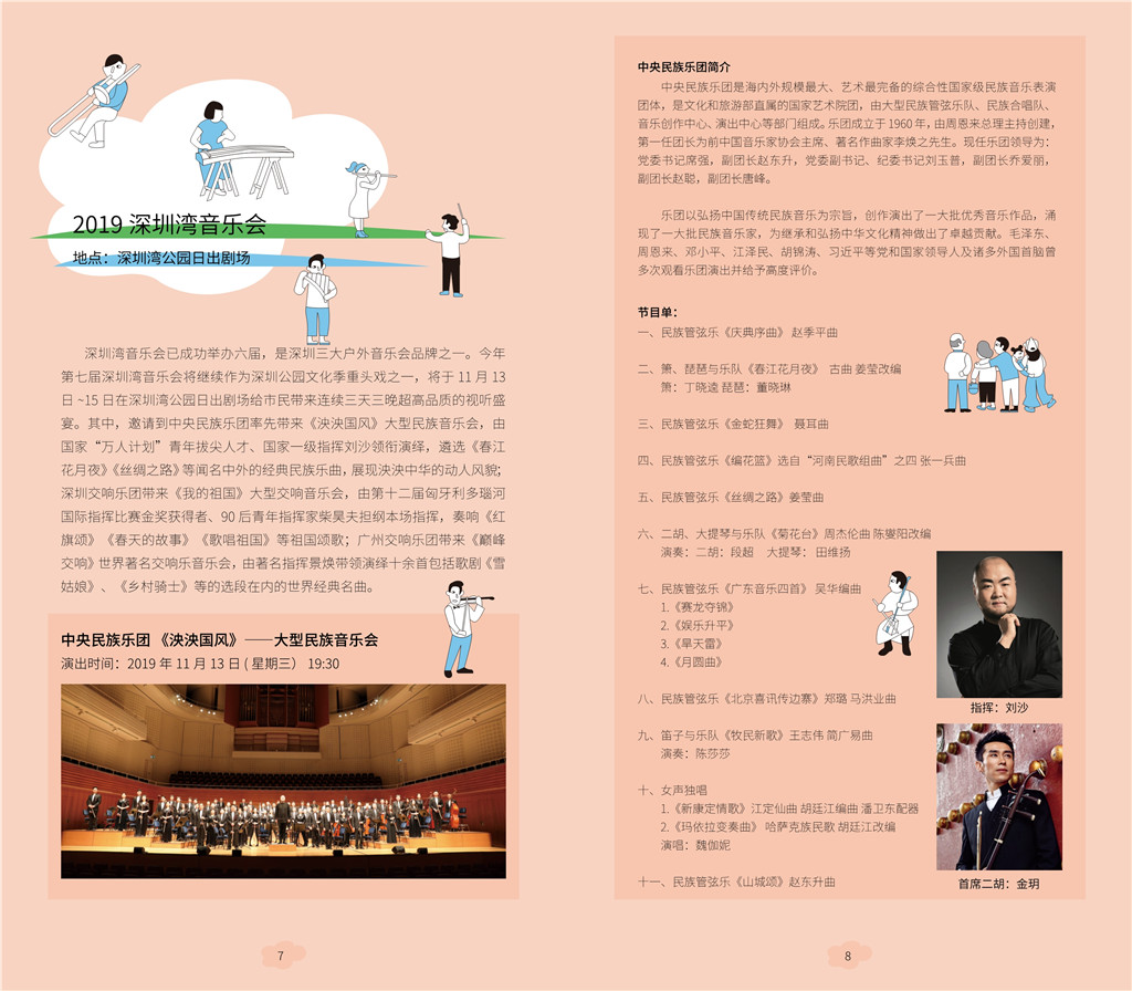 据介绍,今年第七届深圳湾音乐会将继续作为深圳公园文化季重头戏之一,将于11月13日-15日在深圳湾公园日出剧场给市民带来连续三天三晚超高品质的视听盛宴。今年邀请到海内外规模最大、艺术最完备的综合性国家级民族音乐表演团体中央民族乐团率先带来《泱泱国风》大型民族音乐会,还有深圳交响乐团带来《我的祖国》大型交响音乐会,广州交响乐团带来《巅峰交响》世界著名交响乐音乐会。