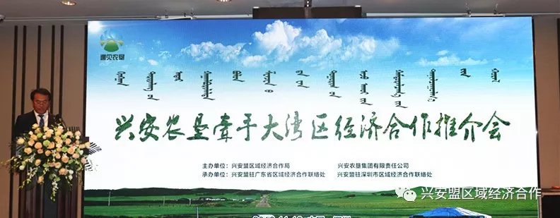 为贯彻落实兴安盟委、行署关于加大招商引资力度,积极开展冬季招商攻势,"变冬闲为冬忙"的决策部署,加强区域经济合作,使来自大兴安岭南麓的绿色问候、兴安农垦放心食材走入大湾区,2019年11月13日上午10:00,由兴安盟区域经济合作局与兴安农垦集团有限责任公司主办,广东省区域经济合作联络处、深圳市区域经济合作联络处承办,“兴安农垦牵手大湾区经济合作推介会”在深圳市隆重召开。