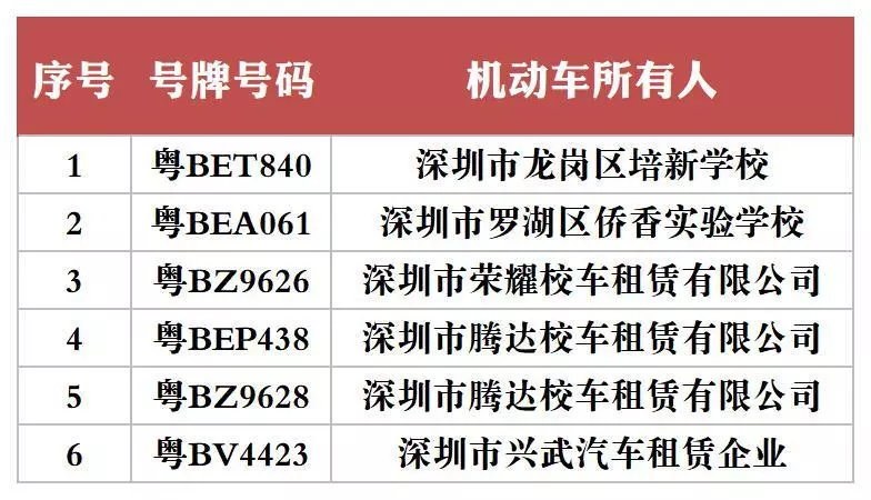 见圳客户端·深圳新闻网2019年11月14日讯 据“深圳交警权威发布”微信公众号消息,部分企业、驾驶人忽视安全问题,对名下“逾期车辆”迟迟不处理,存在着重大安全隐患。深圳交警继续针对重点隐患车辆点名曝光,数据统计截止到2019年11月7日,9辆校车存在逾期未检验,151辆营转非大客车存在逾期未检验、逾期未报废。