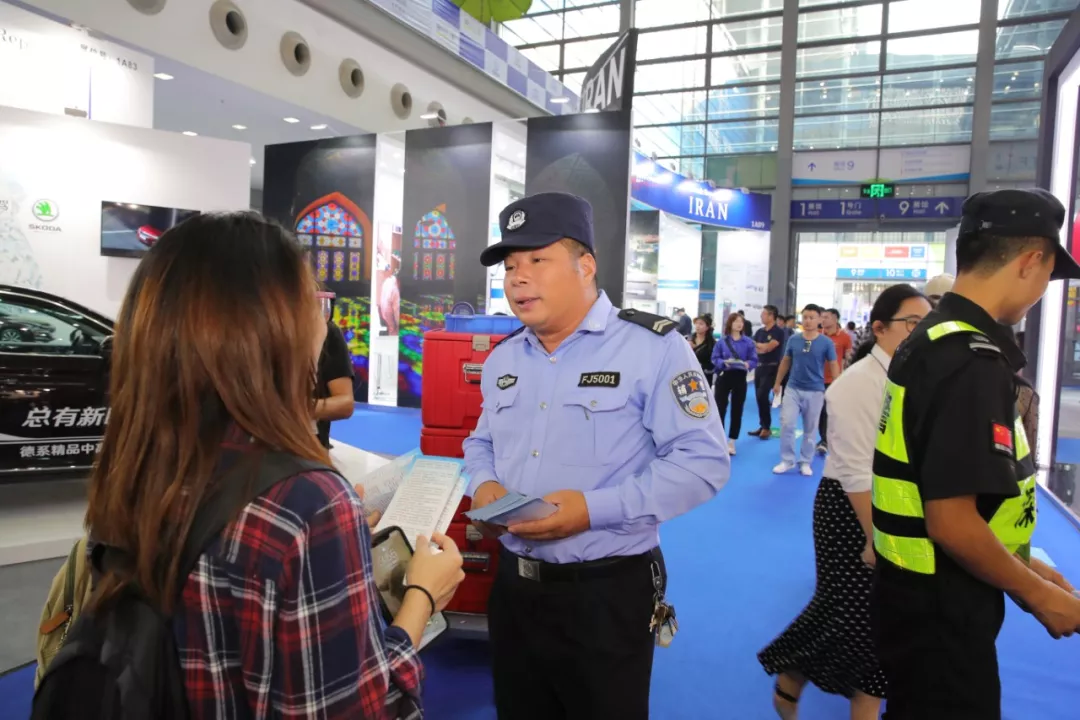11月13日至17日,福田公安分局民警、队员在巡逻执勤中救助身体不适群众,捡到丢失的钱包、身份证、背包、等物品并及时联系归还失主,好人好事共34起(捡身份证23起,手机5起,背包3起,钥匙、对讲机、银行卡各1起)。所有执勤民警、队员、义警用责任和汗水守护了展会平安。
