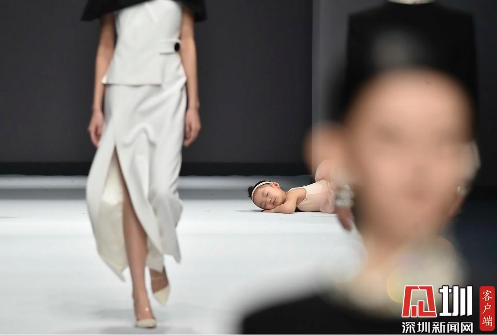 2019年3月15日,深圳时装周,一位在T台上睡着的小女孩。