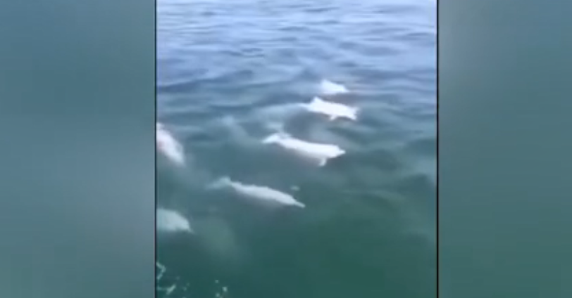 最近,白海豚又来深圳打卡了,它们在水中嬉戏,可快活了