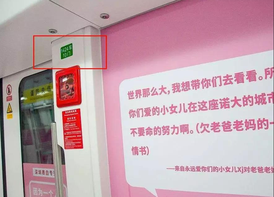 如果想要让自己在车厢里的位置更精确些,除了掌握所看到的车厢编号外,可以留意一下车门编号,地铁列车每一节车厢内共有10个车门,车门编号一般以车厢为单位来设置,车门编号张贴在每扇车门的侧上方。比如,“1424车10门”就是指你正位于1号线42号列车第4节车厢的10号门。