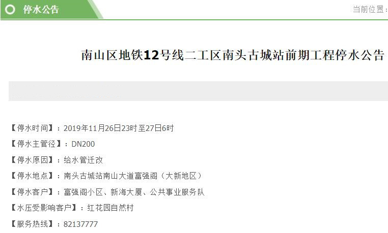 提前做好准备!26-29日南山、福田这些小区将停水