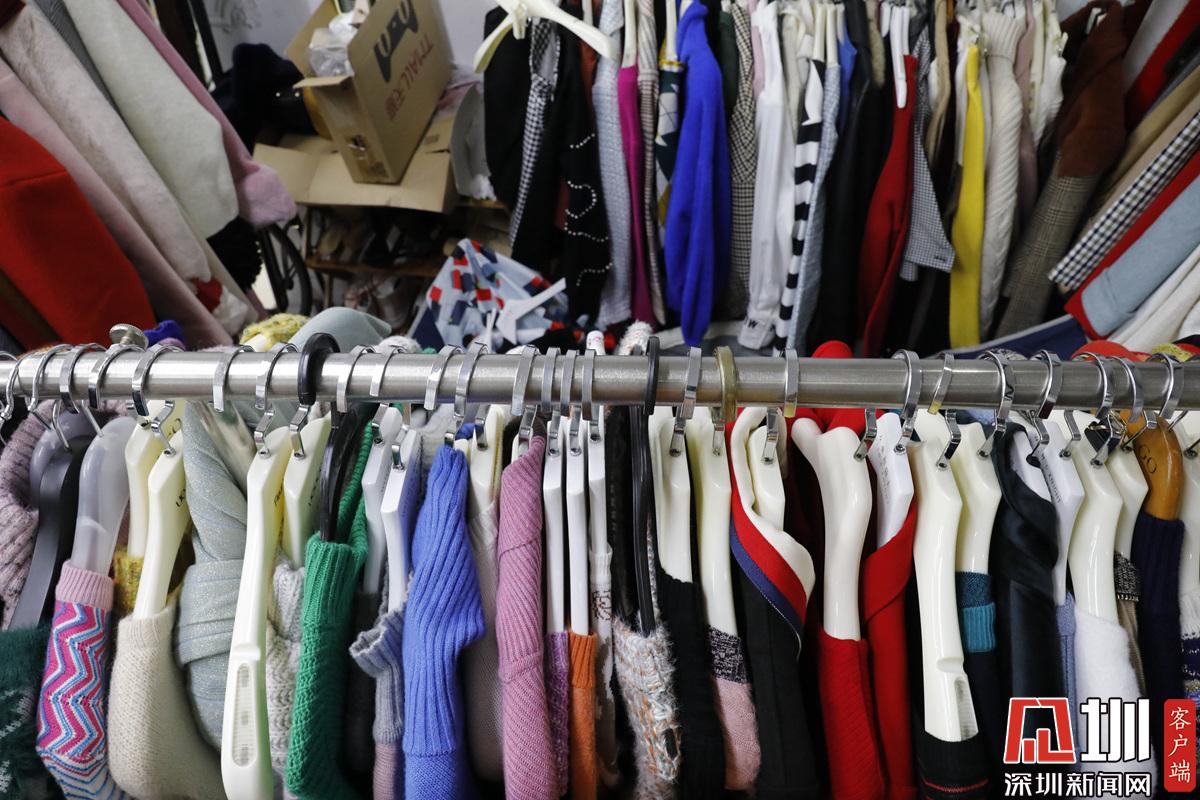 在吕晓静的直播间中摆满了衣服。