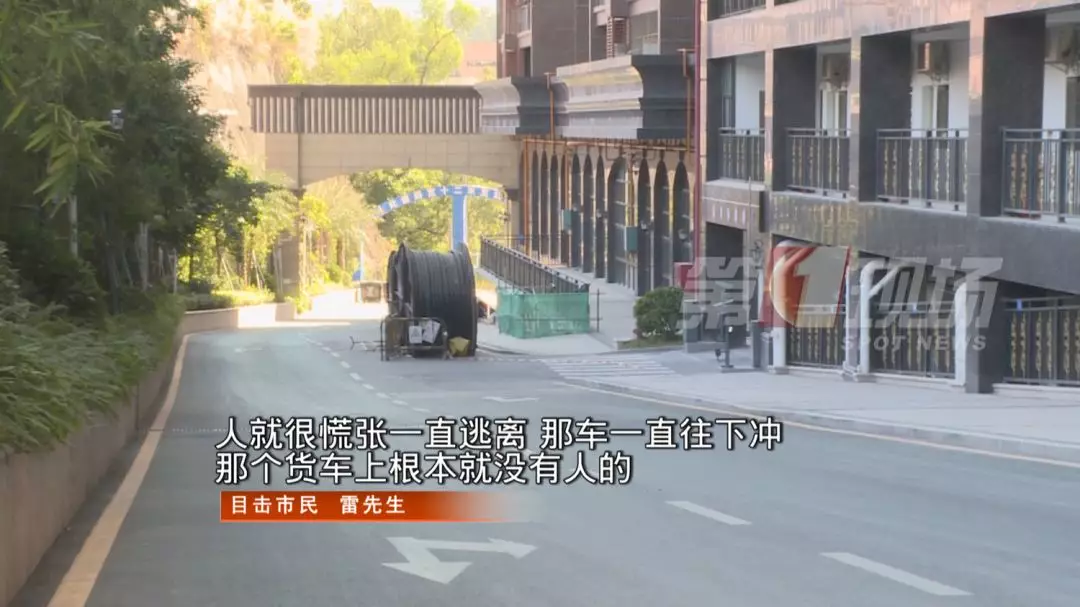 监控中的这一幕发生在罗湖区的一个建筑工地旁,事发时间是11月26号下午的1点左右,有几位市民正走在一条陡坡路上,他们听到后面传来开车的声音,下意识地往路边躲避。