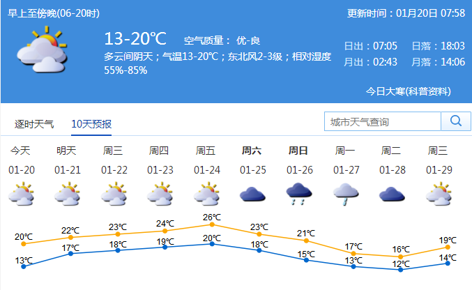 见圳客户端·深圳新闻网2020年1月20日讯 今日迎来一年中最后的一个节气——大寒。小伙伴们都回家过年了吗?近两日,深圳阴天间多云,天气有些凉。未来一周天气如何?