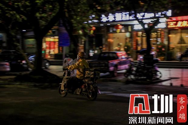 夜幕之下,鲜少行人走动,路上只见外卖、快递小哥在奔忙。