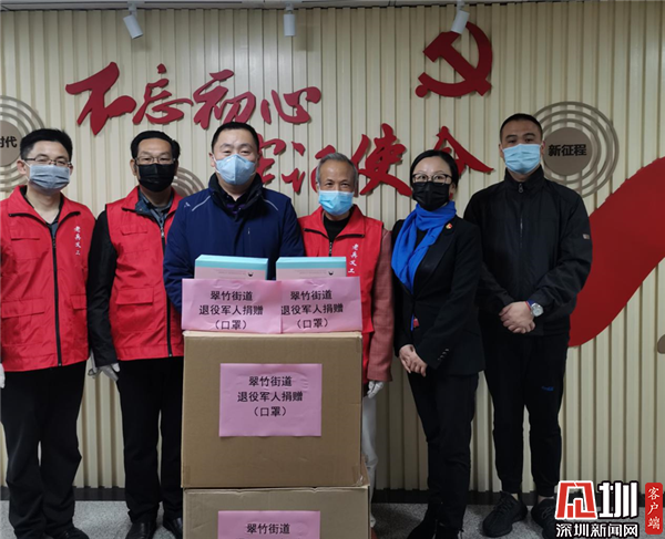 2月6日上午,一批价值2万多元的口罩送到深圳市罗湖区翠竹街道办事处,原来,这是退役军人代表林贞辉、邹强杰送来的防护物资。“在当前防护物资紧缺的情况下,感谢你们对街道防疫一线工作的援助和支持,退役军人‘退伍不褪色’的精神令人敬佩。”街道党工委书记袁亮向他们表达感谢。