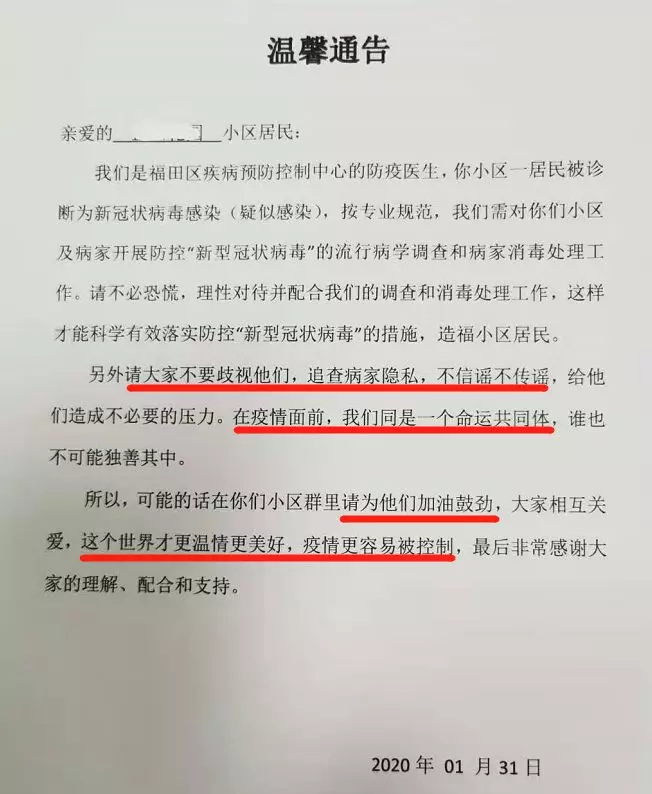 “疫情阴影下,深圳这个小区的通告温暖了我……”