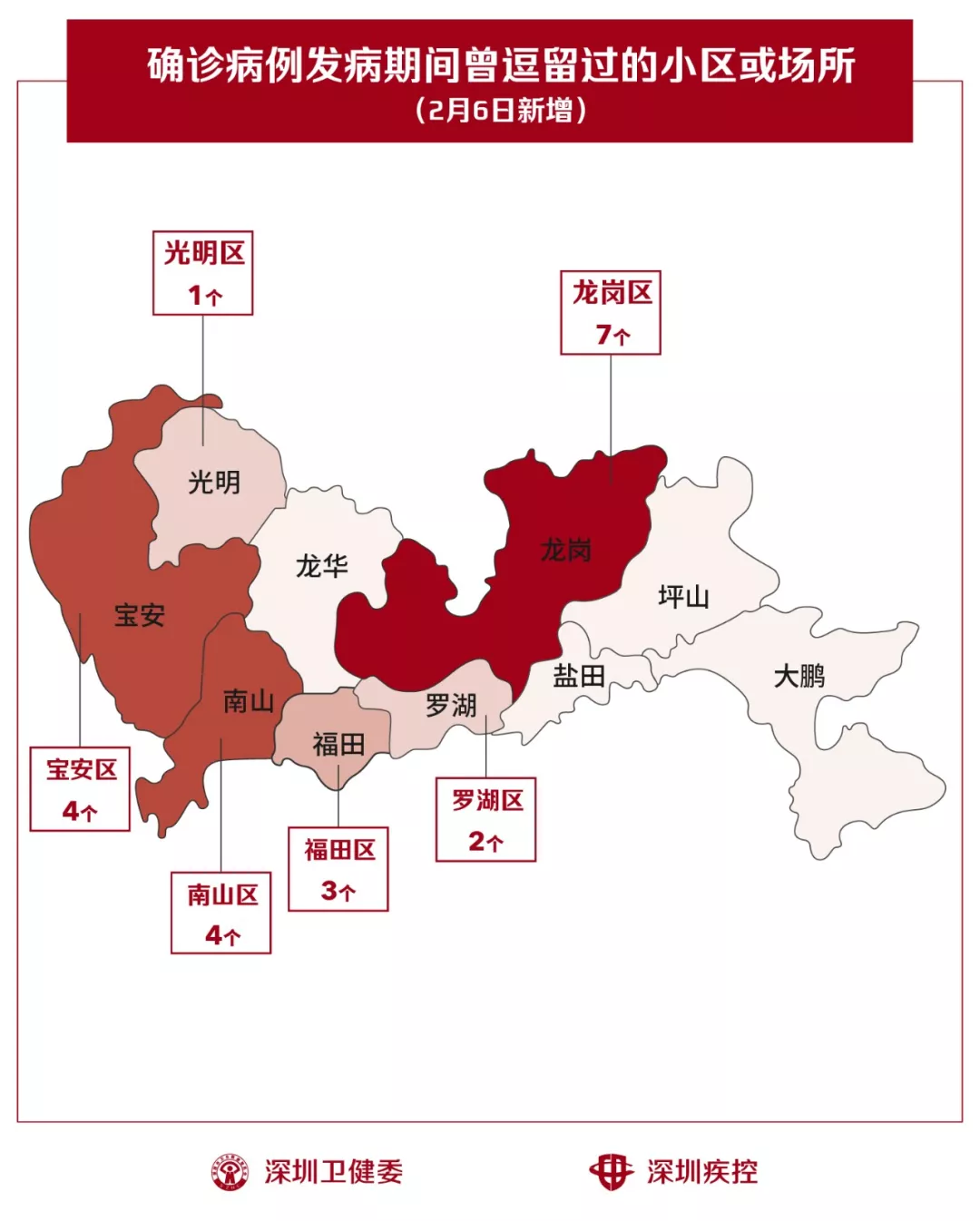 2月6日,疾控专业人员通过最新的流行病学调查确认,深圳新增21个小区(场所),有新确诊的病人在出现病征期间曾经逗留。