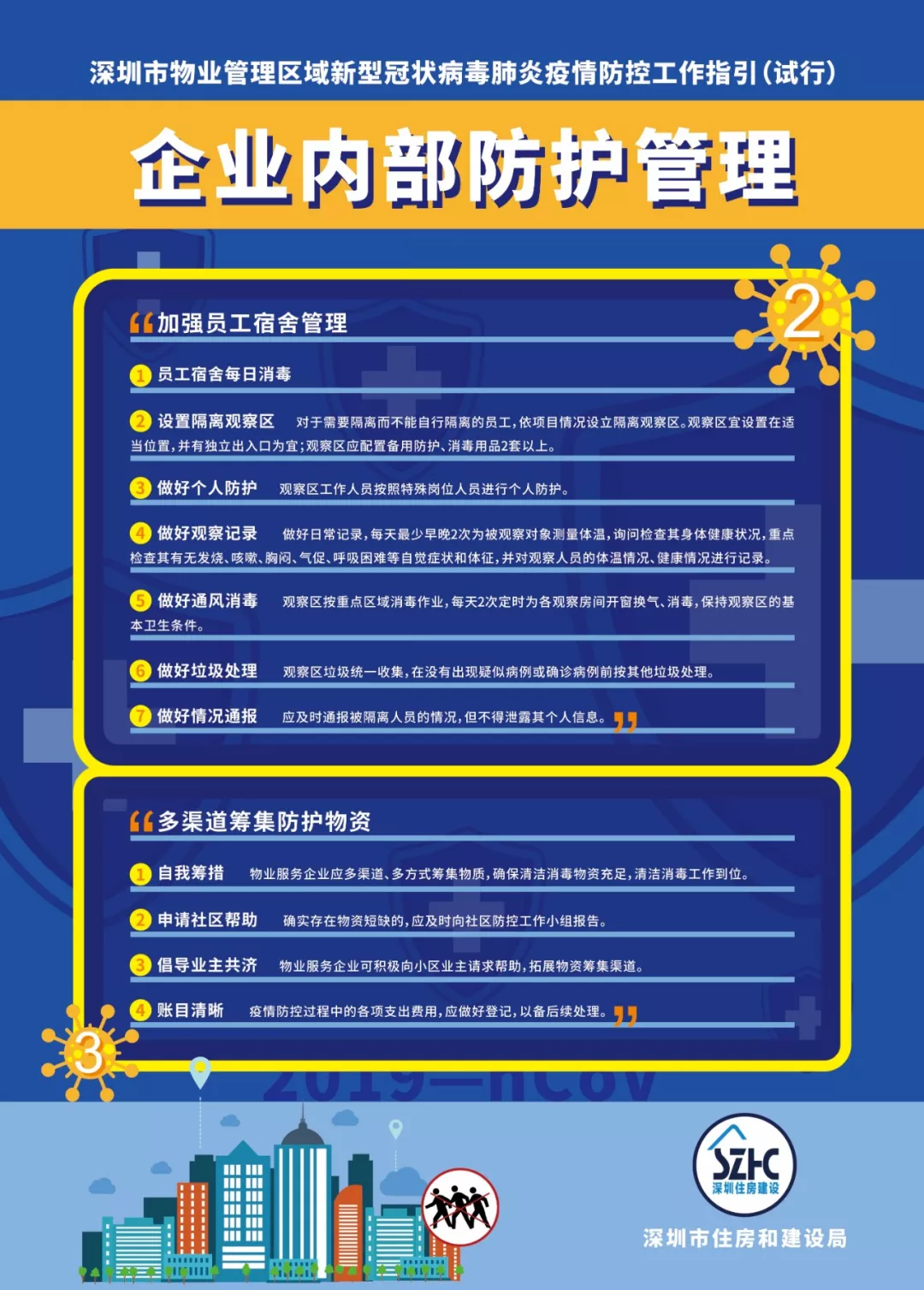 为进一步做好物业管理区域新型冠状病毒肺炎疫情防控工作,依据《广东省物业管理区域新型冠状病毒感染的肺炎疫情防控工作指引(试行)》《深圳市新型冠状病毒感染的肺炎疫情防控指挥部印发关于建立健全社区联防联控机制的若干措施的通知》《深圳市新型冠状病毒感染的肺炎疫情防控指挥部办公室社区小区组工作方案》《深圳市新型冠状病毒感染的肺炎疫情防控指挥部办公室关于印发住宅小区和城中村全面实施人员通行认证管理的工作指引的通知》等文件,结合当前实际,市住房建设局编制了《深圳市物业管理区域新型冠状病毒肺炎疫情防控工作指引(试行)》,现印发给你们,请参照执行。