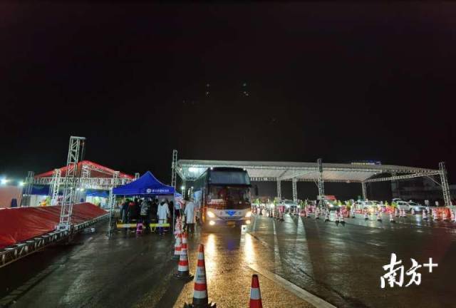 宝安区罗田检疫站指挥部总指挥,石岩街道党工委副书记、人大工委主任邓亚虎,石岩街道副主任林志明和罗田交通联合检疫站临时党支部党员冒雨检查。当晚,深圳市公安局经侦支队支援4名民警在现场冒雨防疫检查。