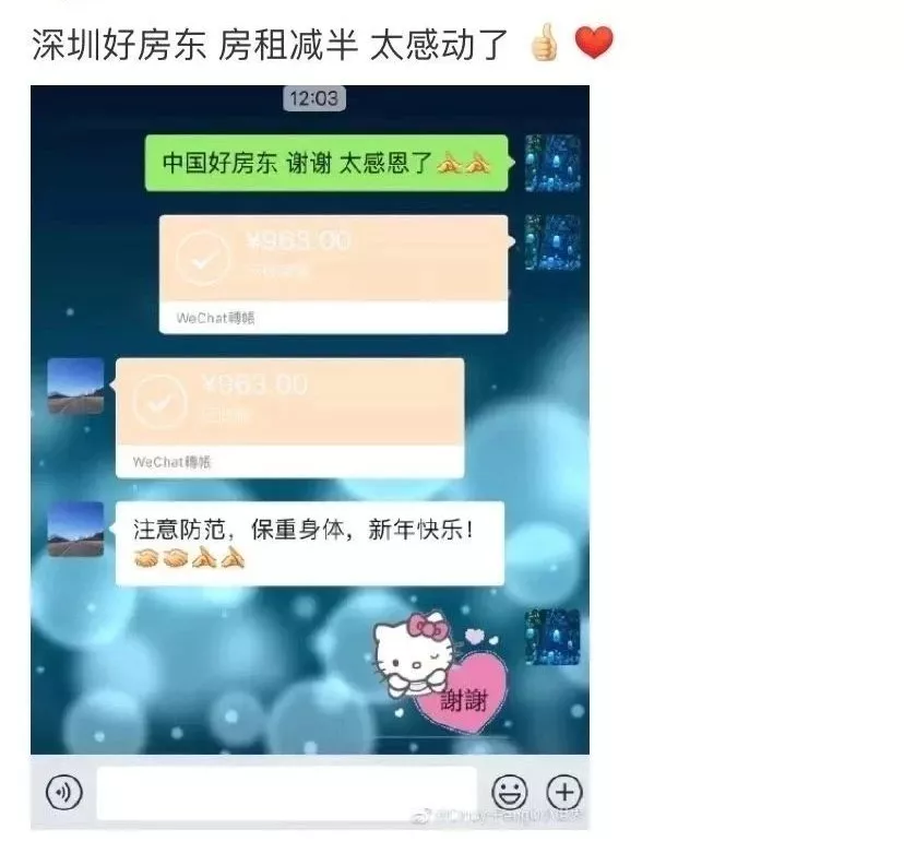 C******a:我有一位龙岗朋友是房东,他们给所有租客都减免了半个月的房租。暖心感动!