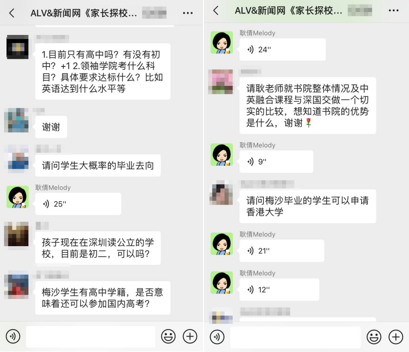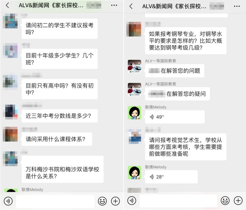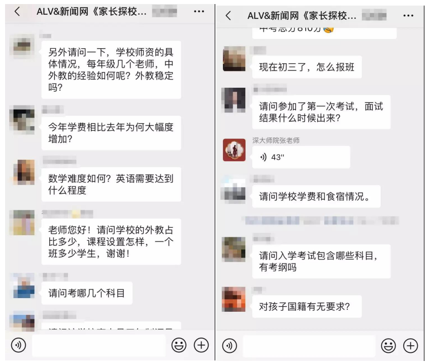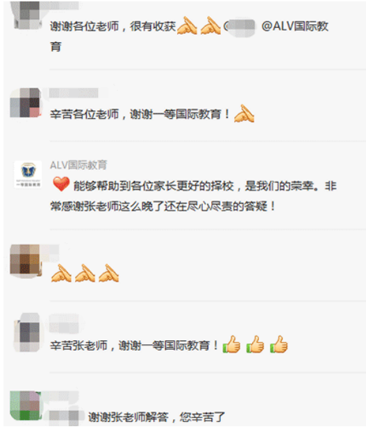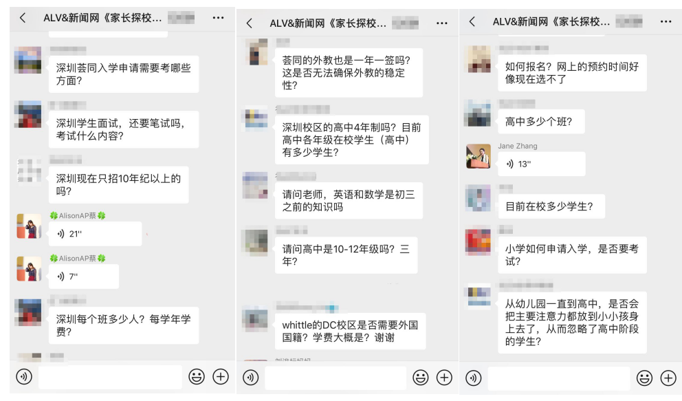 据介绍,在这三场探校活动中,招生官耐心而又细致的逐一为家长答疑解惑,赢得家长对本次活动的高度认可。以下为“家长探校团”微信群内互动截图: