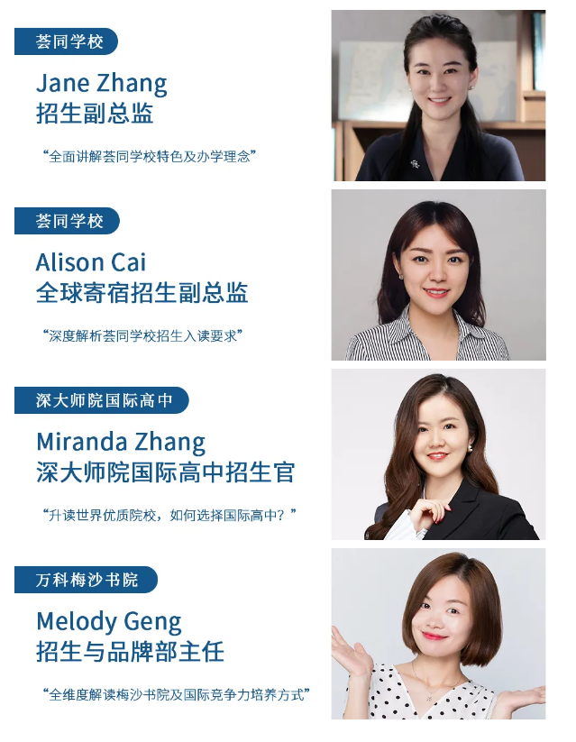 据悉,第一期线上探校活动,主办方邀请了荟同学校、深大师院国际高中、万科梅沙书院招生官,通过 ALV云学堂进行直播探校,为参加“家长探校团”活动的家长,提供第一手的学校资讯。