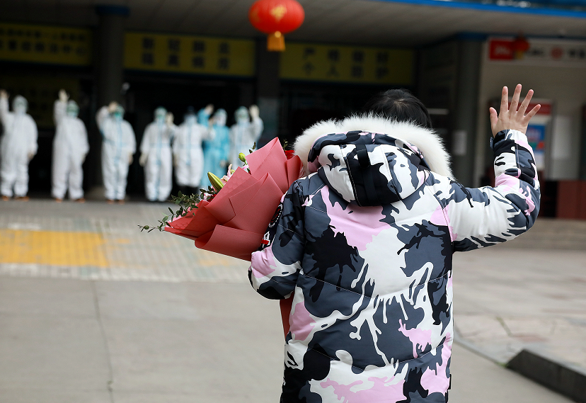 “你住院的消息让医疗队、指挥部和广东人民都很牵挂。”刘国斌说,“远程会诊时,钟南山院士除了提供了专业的指导意见,还一再叮嘱,一定要好好照顾你。你是一名了不起的抗疫战士,是‘白衣天使’的骄傲。”他还嘱咐张冬雪,出院后的隔离阶段要好好休息,早日完全康复,并邀请她以后来广东,和医疗队队员进行交流、研讨。周琳高兴地挥着手对张冬雪说:“很快就到三八节了,提前祝你节日快乐!”