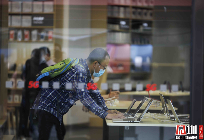 3月16日下午,华强北的一家电子产品专卖店中,一位男士正在使用电脑。