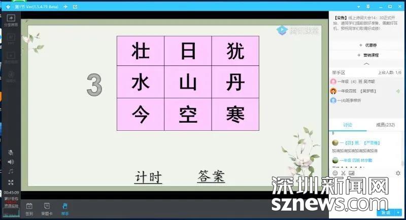 见圳客户端、深圳新闻网2020年3月30日讯 (记者 潘宝仪 通讯员 王弯弯 )3月27日下午,龙华区第三外国语学校举行首届线上诗词大会,此次诗词大会以全媒体联动的形式打破时空限制,用趣味竞赛的方式吸引了全校500余名学生的广泛参与,掀起了同学们学习古诗词的热潮。