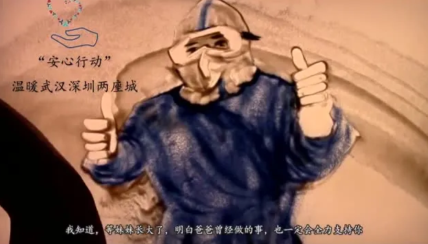 2020年2月24日,由深圳市委组织部、深圳市委卫生工委、深圳报业集团主办,福田区委协办,深圳晚报社、深圳喜马拉雅承办推出《安心家书》。4月15日,沙画版安心家书︱刘蕴:待到明年春暖花开时,我们再去武汉看樱花暖心上线,让我们一起领略独特艺术所展现的医者仁心。