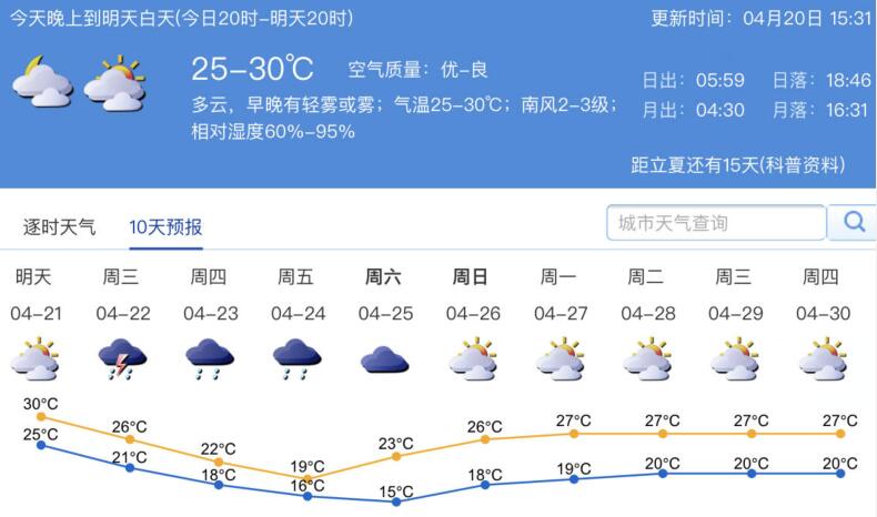21日深圳最高气温依旧30℃以上!不过,冷空气要来灭火了