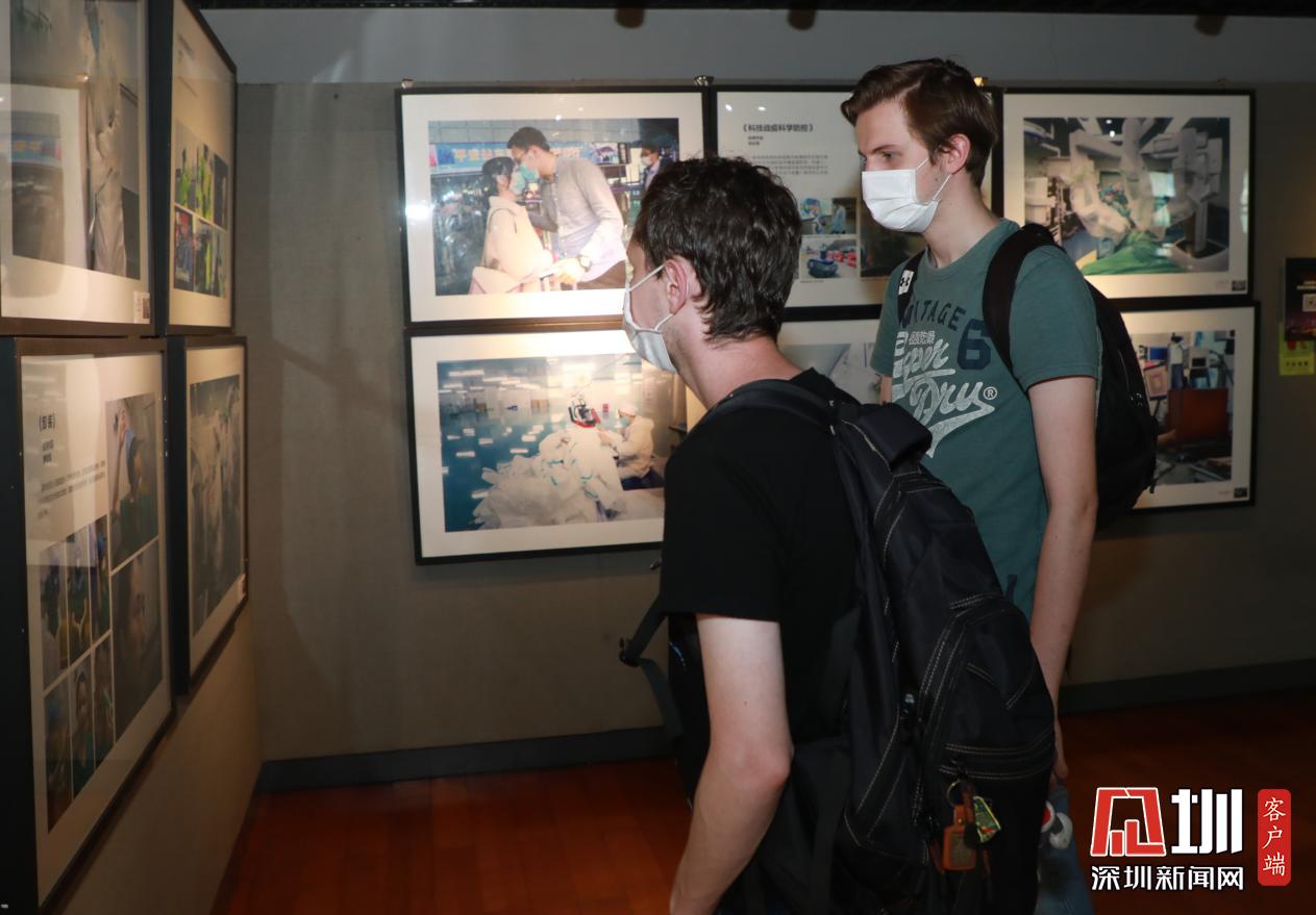 在现场前来观展的人群中,记者还注意到几位外籍友人。在采访中,从英国远道而来,在深圳生活了六个月左右的他们,还主动向记者指出了部分获奖摄影作品中的深圳平安大厦、欢乐海岸等他们平时较为熟悉的标志性建筑。而在被问到现场印象最深的作品时,他们又细细把展厅看了一遍,最后站定在这张带着浪漫人文气息的作品《送别》前。听罢记者介绍摄影师在作品中所表达出的“隔离病毒,但隔离不了爱”之后,他们纷纷捂了捂心口表示:“太甜蜜了,这是特殊时期普通人之间平凡自然的爱和浪漫。”