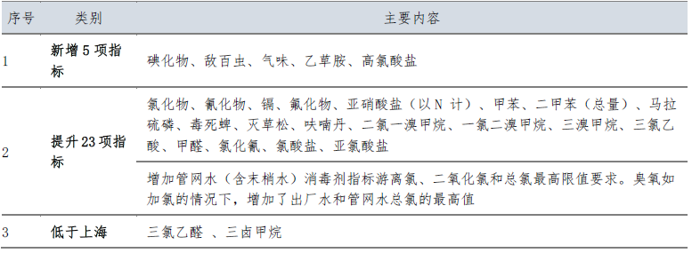 表3、深圳市《生活饮用水质标准》与上海《生活饮用水水质标准》(DB31/T1091-2018)相比
