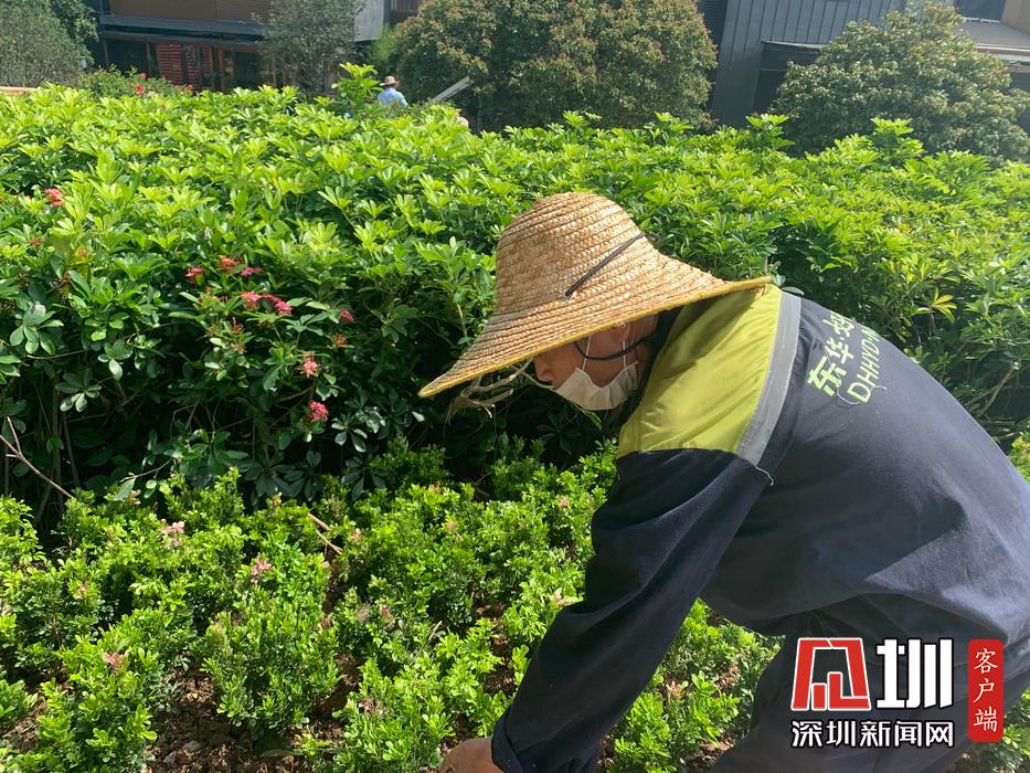 天气炎热,欢乐海岸园丁在户外工作依然佩戴口罩。