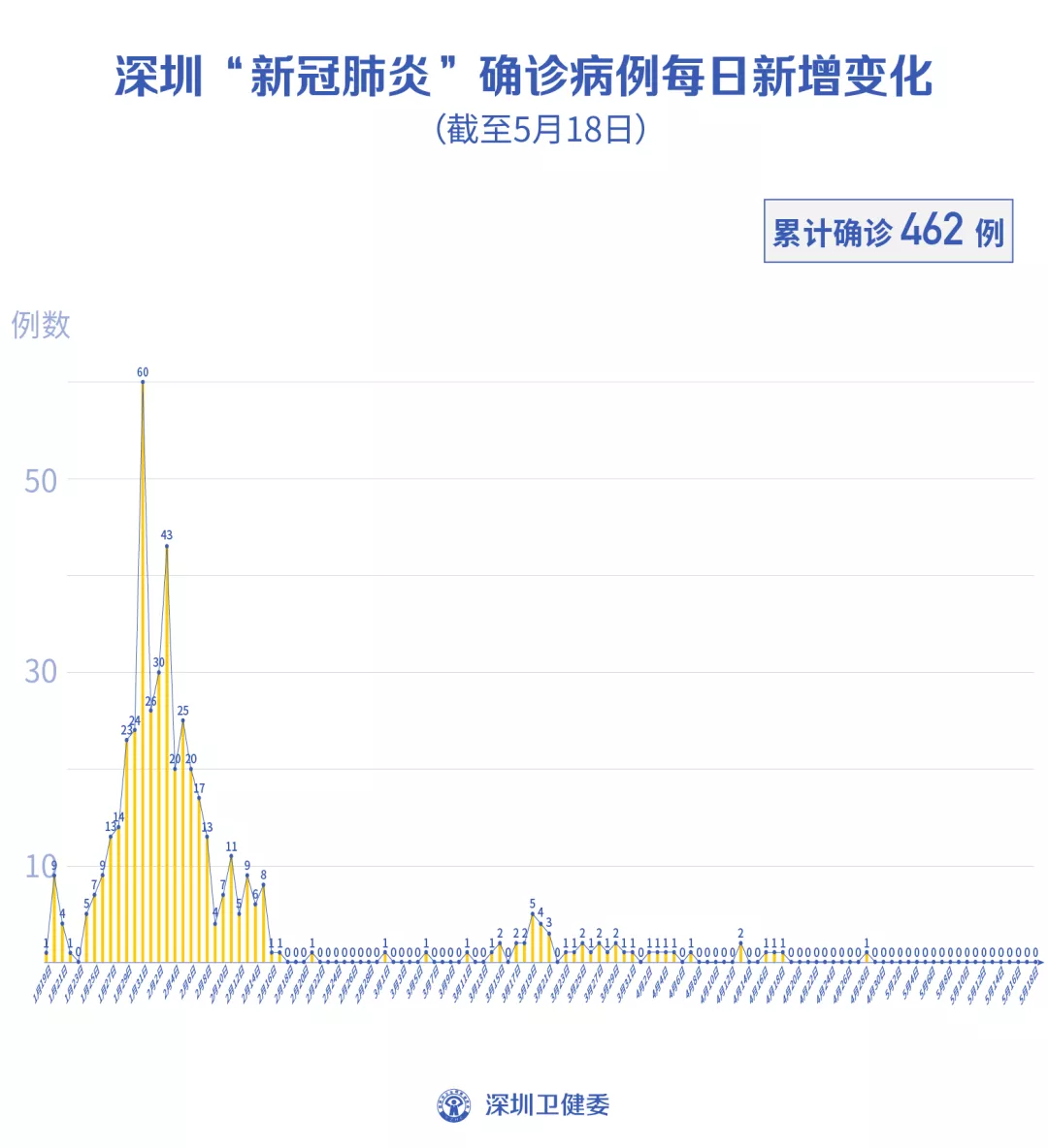 截至5月18日24时,深圳累计报告新冠肺炎病例462例。