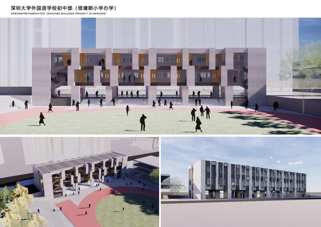 4所学校新建教学楼均为装配式钢结构建筑,首层为架空层活动空间,二、三层为教室、教师办公室及卫生间。