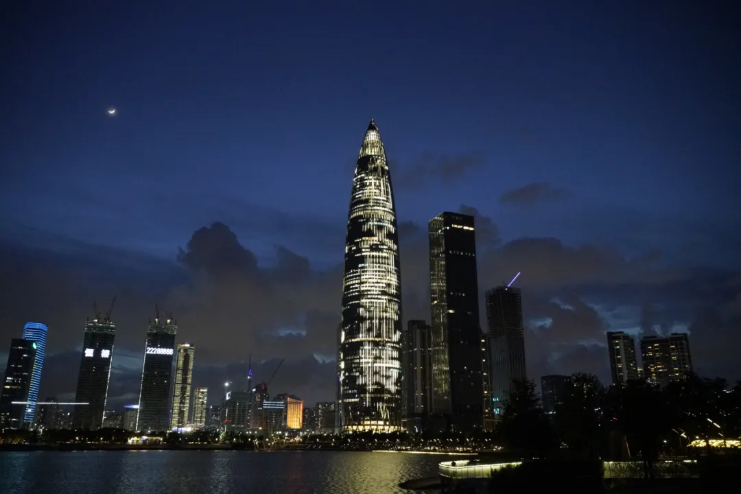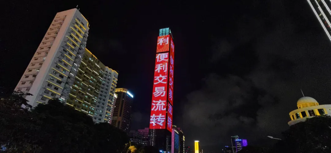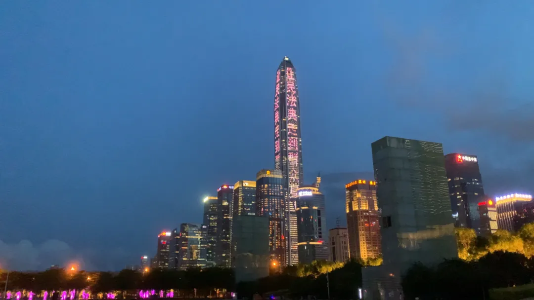 平安国际金融中心、京基100大厦、深圳汉国城市商业中心、深圳湾1号、中国华润大厦五座城市地标的外立面上,同时亮起了绚丽的灯光。