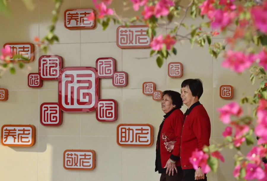 老人们在福建省晋江市磁灶镇大埔村敬老院散步(新华社记者宋为伟摄)