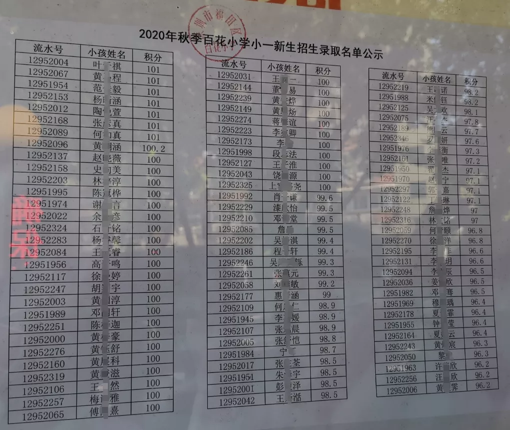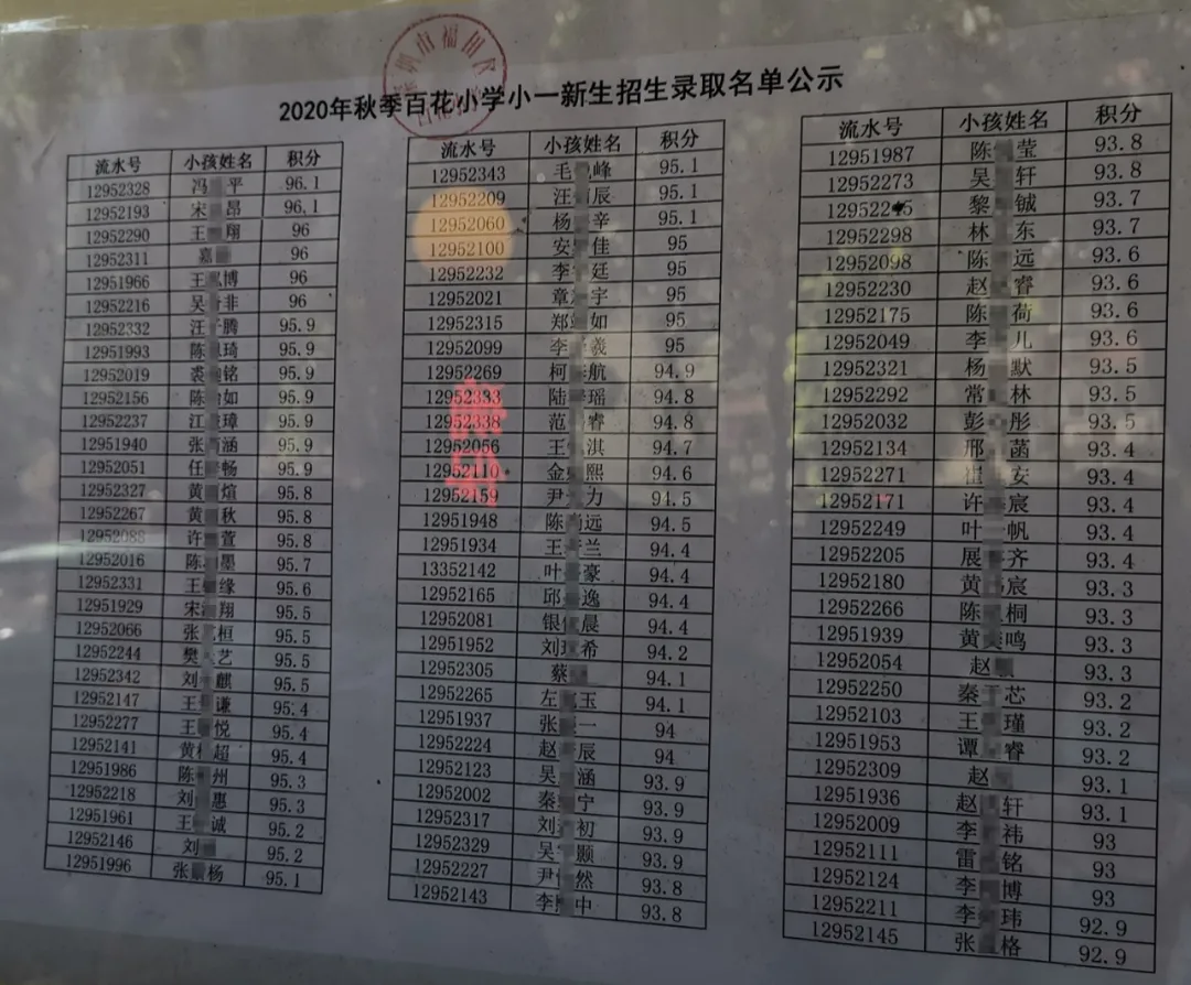 小一家长们关心的2020年公办小一年级新生报名积分录取名单今天开始放榜啦。