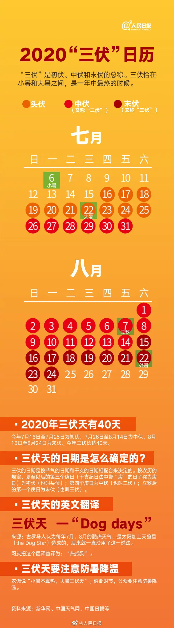 今年的入伏时间是7月16日(本周四),一年中最热的时候就要到了,而且,今年三伏天长达40天。