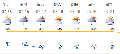 预计15-17日多云,有短时(雷)阵雨;18-20日天气闷热,局地偶有短时阵雨。