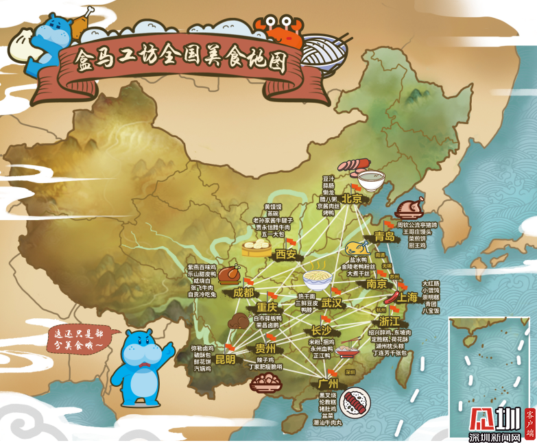 目前,盒马工坊已覆盖全国23个城市,不仅在每个城市做到因地制宜、本地本味,还把很多地方美食带到了各地,形成了一张流动的全国美食版图。