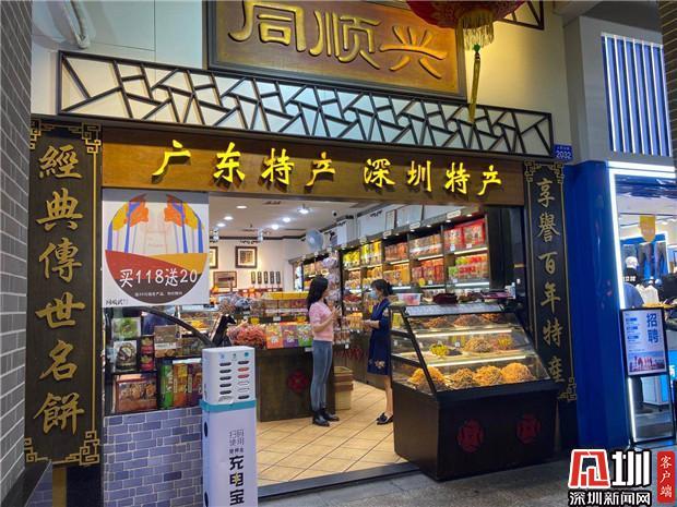 漫步在老街,美食的香味总会萦绕在旁,欢声笑语,走走停停,接地气的东门总给人一种治愈般的感受。在文化广场旁的一条古风步行街,隐藏着一家有83年历史的深圳特产店,随着直播镜头看到,老公饼、老婆饼、杏仁饼、鸡仔饼等熟悉的糕饼近在眼前。同顺兴饼店店长高秀红介绍,店内不仅只有糕饼类的特产,还有各种海产品、鱼干、糕点、干果、酥糖等,随着近年来,大家都以健康为饮食习惯,同顺兴在多年前便制作以低油、低糖制饼原则为消费者的健康把关。此次为迎接“双十一”热潮,门店也做了买五送一等优惠活动。