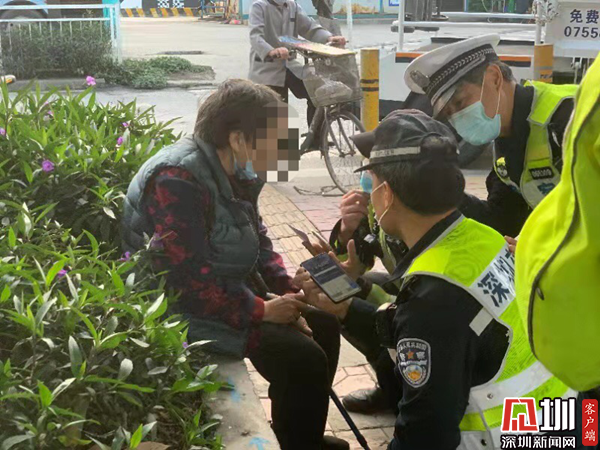 天色渐晚,此时深圳的交通处于晚高峰车多缓行状态,民警考虑到贺老太太独自坐在路边存在安全隐患。于是民警把贺老太太搀扶上警车,带着贺老太太一路从滨河大道至渔民村-和平路-嘉宾路-金光华-火车站一带的城中村查找线索。同时,民警还向110指挥中心和附近多个派出所反映该情况,看是否有人报警寻找走失的老太太。