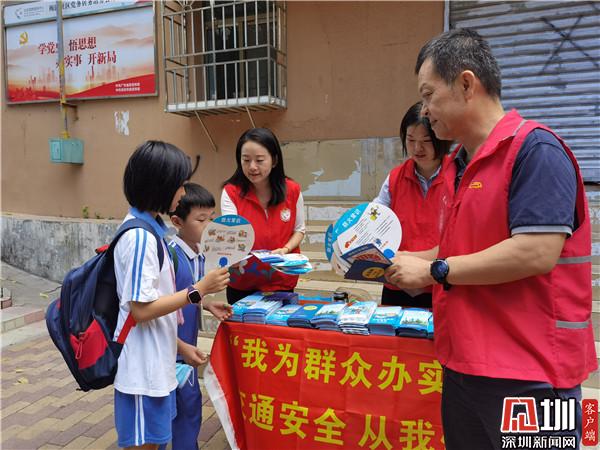 见圳客户端·深圳新闻网2021年5月22日讯(记者 李慧 通讯员 陈秋珊)为深入贯彻落实党史学习教育中发挥基层党组织和党员作用,将“为人民服务”的理念落到实处,5月21日,深圳市罗湖区清水河街道梅园社区党委联合共建单位读特、深圳新闻网党总支,在红岗西村公交站台周边开展“我为群众办实事-交通安全从我做起”平安宣传活动。