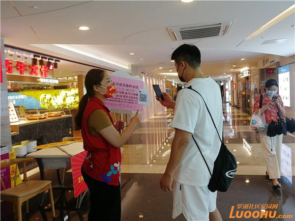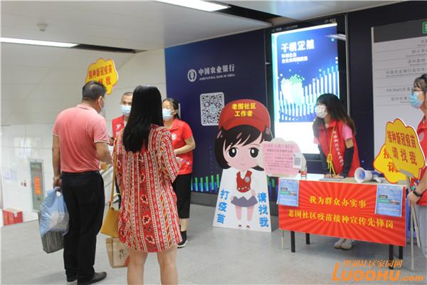 客运繁忙的大剧院地铁站就在老围社区,老围社区党委就把“疫苗接种宣传先锋岗”从小区卡口扩展到地铁口。在川流不息的地铁口,宣传岗上的大字“我为群众办实事,老围社区疫苗接种宣传先锋岗”,金光闪闪格外醒目。旁边的小喇叭循环播放:“接种疫苗人人有责,打第二针疫苗请找我,不用排队不用预约,专车接送。”