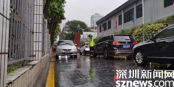 读特客户端·深圳新闻网2021年6月28日讯(记者 刘晨 通讯员 陈泽萍)6月28日早高峰,一波强降水席卷深圳,路段积水,车多缓行。丹平快速往罗湖方向,交警铁骑闪着警灯,带着一部白色轿车迅速往桂园中学方向行驶,十多分钟后,轿车上一名考生被护送入考场。