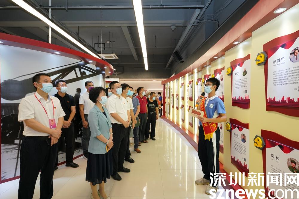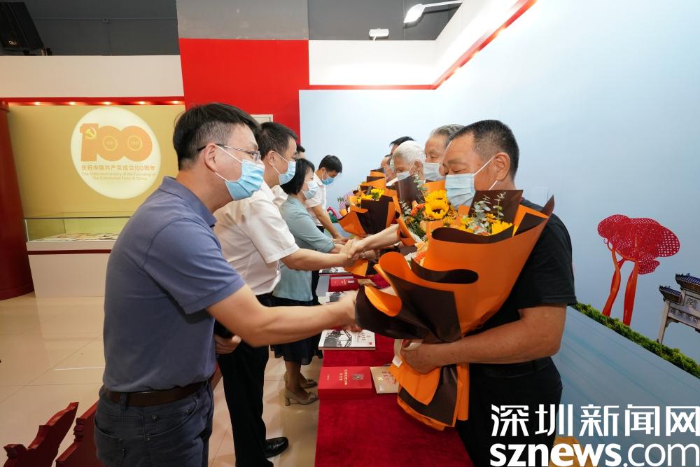 罗湖区委常委、宣传部部长吕漫妮,罗湖区委组织部部务委员、人才工作局局长曹双玺,罗湖区委宣传部副部长、区文明办主任张华嘉,深圳报业集团副总经理朱永峰,清水河街道党工委书记魏刚,清水河街道党工委副书记刘晓春等共同为展览揭幕。部分老兵代表出席了本次活动, 并向嘉宾和学生代表签名送书。开幕式后,罗湖区、清水河街道和深圳报业集团领导为街道 " 光荣在党 50 年 " 纪念章获得者代表党员颁发奖章,为街道办 " 两优一先 " 荣誉获得者代表颁奖。