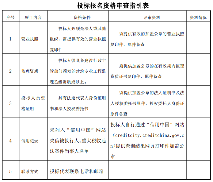 1.以上资格审查合格条件标准中如出现一处不符合要求,其投标报名将不被接受;