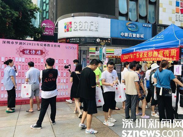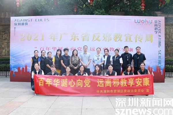 读特客户端·深圳新闻网2021年9月11日讯(记者 刘晨 通讯员 任琪琪)9月9日下午,罗湖区委政法委在东门文化广场举行“2021年反邪教宣传活动周”活动。此次活动以“接地气”为主题,以青少年、妇女、老年人等群体为重点,通过“走心”的宣传形式和内容,让防范抵御邪教意识走进群众心里,筑牢广大群众防御邪教侵害的思想防线。
