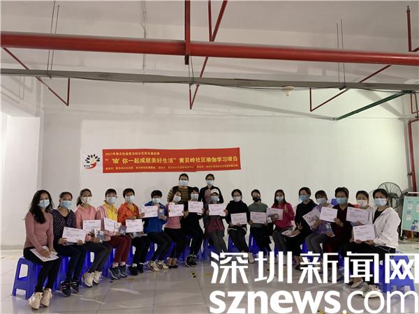 读特客户端·深圳新闻网2021年11月23日讯(记者 郭含笑 通讯员 关晶莹)近日,罗湖区黄贝街道黄贝岭社区民生微实事项目“‘瑜’你一起成就美好生活”黄贝岭社区瑜伽学习项目圆满结束。至此,黄贝岭社区2021年共开展了40节次的瑜伽学习课程,受惠居民达到了620人次。